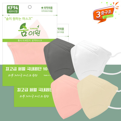 (숨이원파우치)숨이원 KF94 새부리형 라이트 3중 컬러마스크 4종 (1매입)